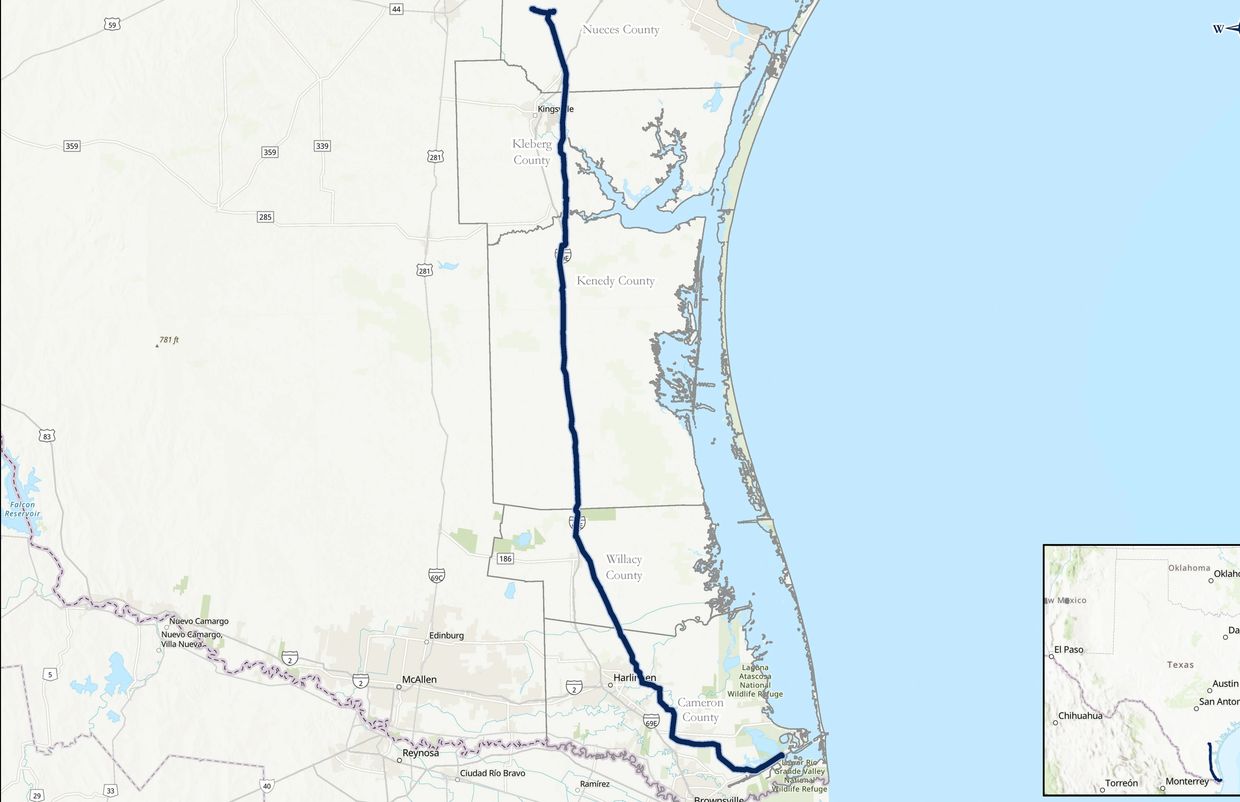 The Bay Runner Pipeline route will include Nueces, Kleberg, Kenedy, Willacy, and Cameron Counties.